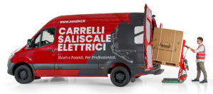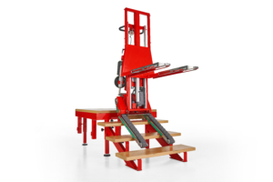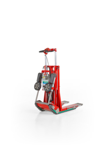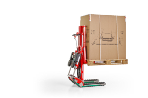 Auf ebenem Boden ist er ein elektrischer Hubwagen mit Gummiraupenantrieb, mit einer Hubhöhe von bis zu 65 cm und Rückneigung zum Beladen des Transporters; auf der Treppe hingegen wird er zum besten Treppensteiger überhaupt.