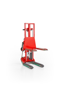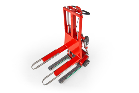 Das Gewicht wird stets über die Gummiraupen auf den Boden übertragen, sodass der Bediener jederzeit sicher arbeitet, ohne unnötigen Belastungen ausgesetzt zu sein. Die Abmessungen der Gabeln entsprechen denen der gängigsten herkömmlichen Hubwagen, sodass im Wesentlichen dieselben Lasten aufgenommen werden können.