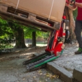 Ideal zum Bewegen von Paletten auf unebenem Gelände, auch bei Steigungen bis zu 35 Grad, sowie zum Überwinden von Bordsteinen und Treppenrampen.