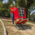 Andernfalls nutzt man die Räder, um sich auf ebenem Boden leicht fortzubewegen.